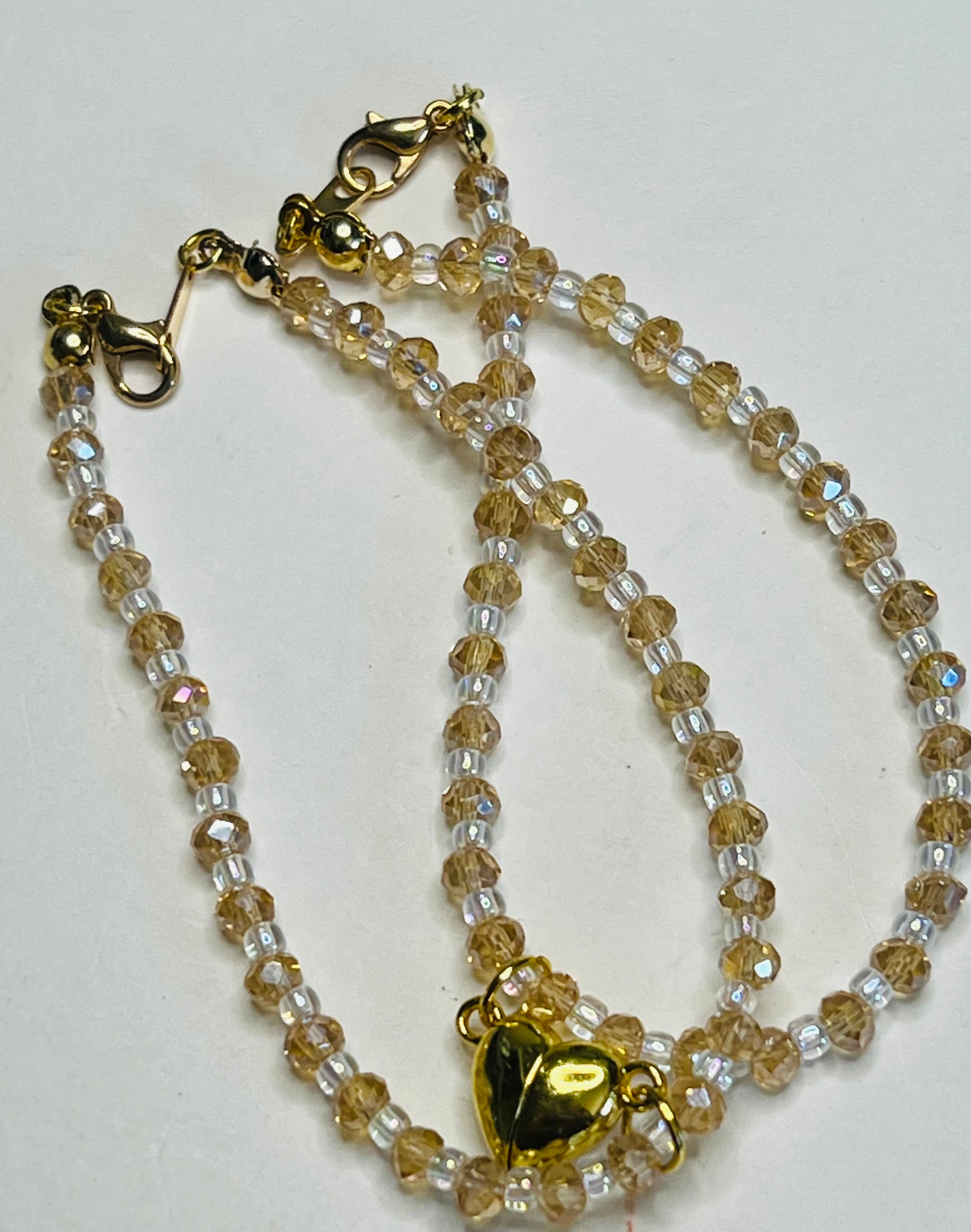 This 2 Set Bracelet, handmade by momis designs, features 4mm topaz and 3mm white beads.
