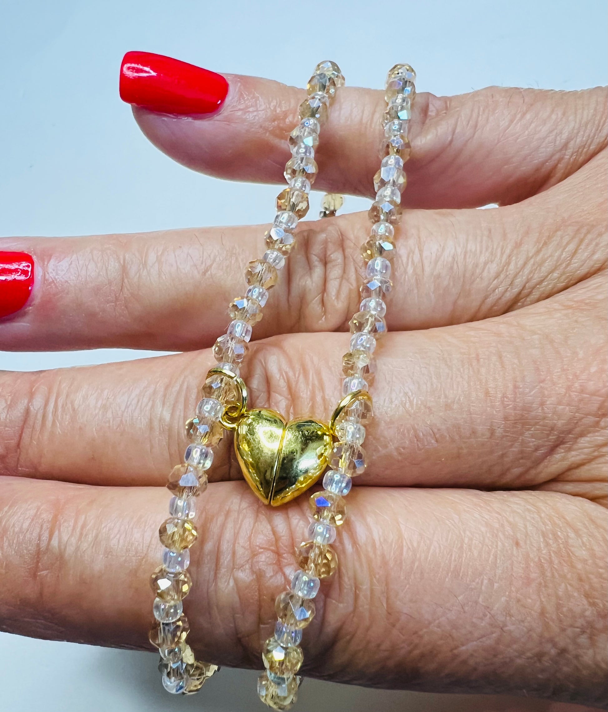 The set includes 2 necklaces with 1/2 heart and a magnet that come together, symbolizing the ultimate act of love.